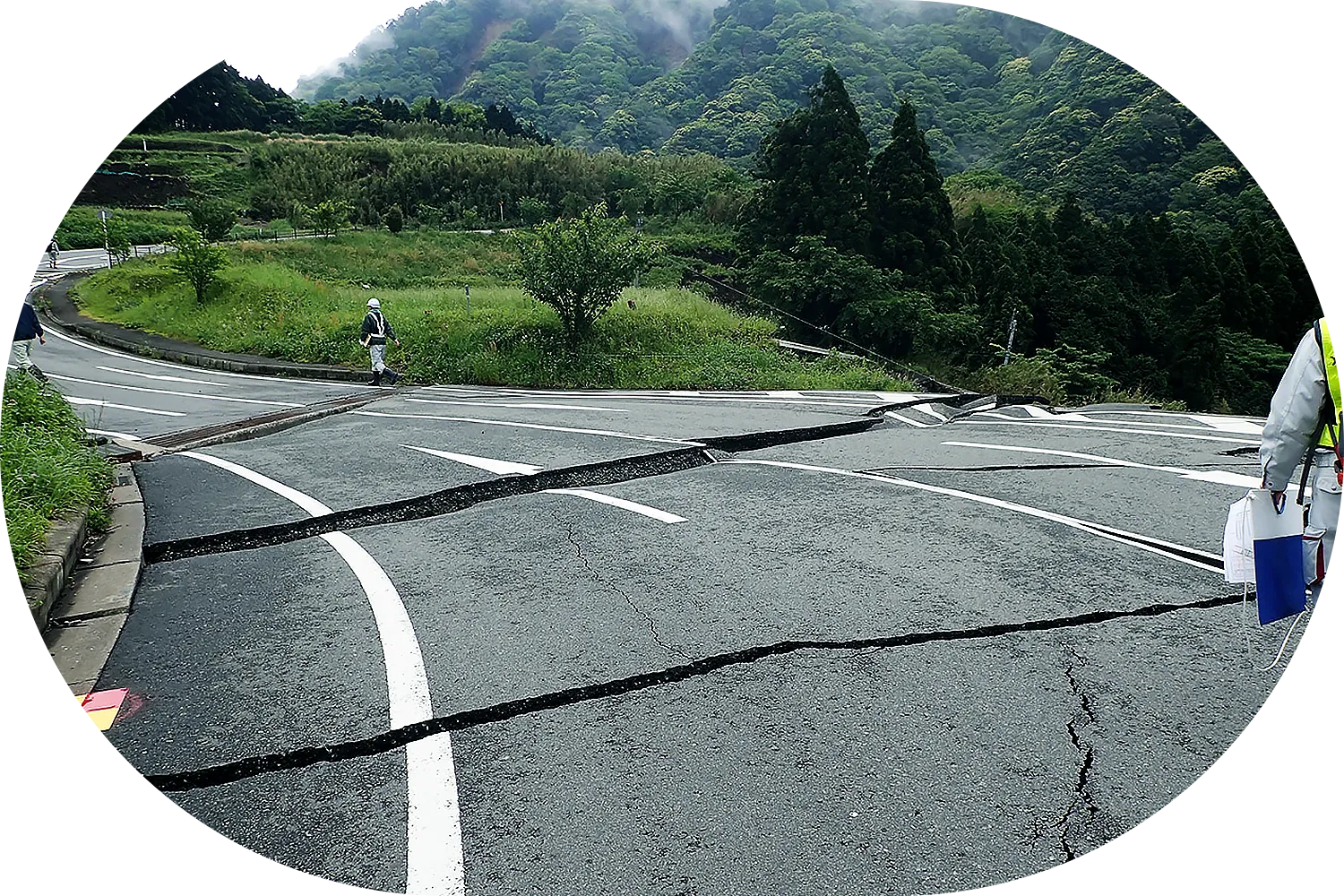 道路の現状や地盤の状態、周辺環境を詳細に調べ、地形や土質、排水状況などを把握します。